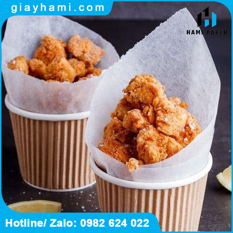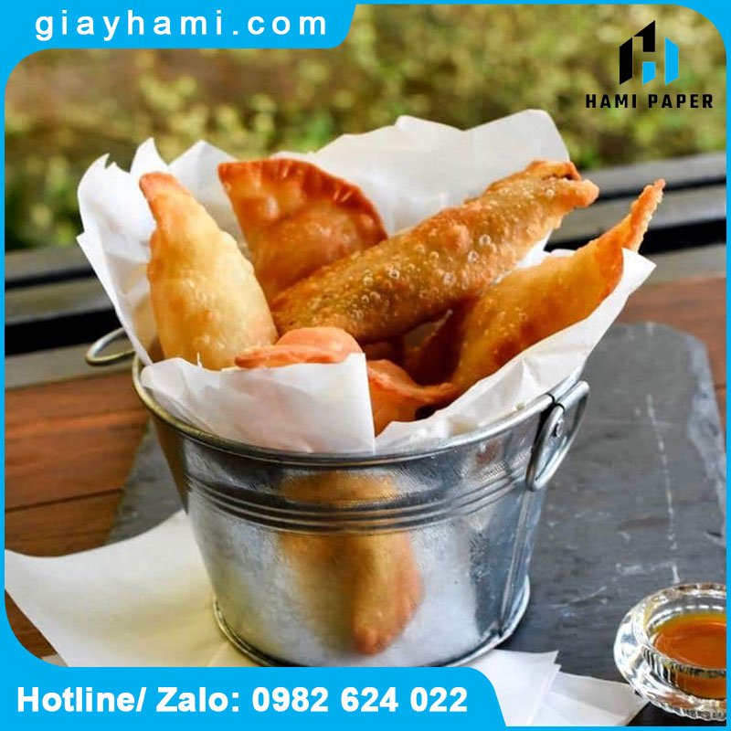 Bao bì thực phẩm: Gói bánh mì, sandwich, khoai tây chiên, giấy lót burger… Đảm bảo an toàn vệ sinh và tăng tính thẩm mỹ.